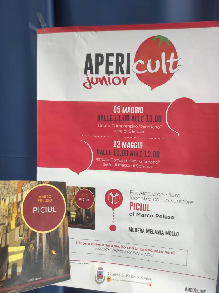 Alcuni momenti della quarta edizione di Apericult, iniziativa organizzata dalla docente Clara Ilardo e condotta da Melania Mollo. È stato bellissimo trovarmi sul palco nella splendida cornice della Villa Comunale di Massa di Somma, ma ancor più presentare Piciul e condurre due laboratori di scrittura creativa con i ragazzi e le ragazze dell’Istituto Comprensivo Luca Giordano di Massa di Somma e di Cercola.